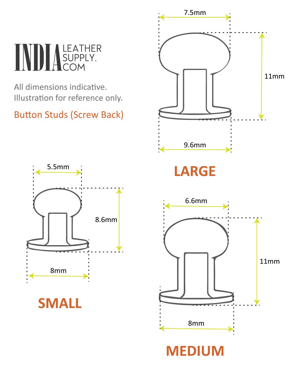 Solid Brass Button Studs (Screw Back)