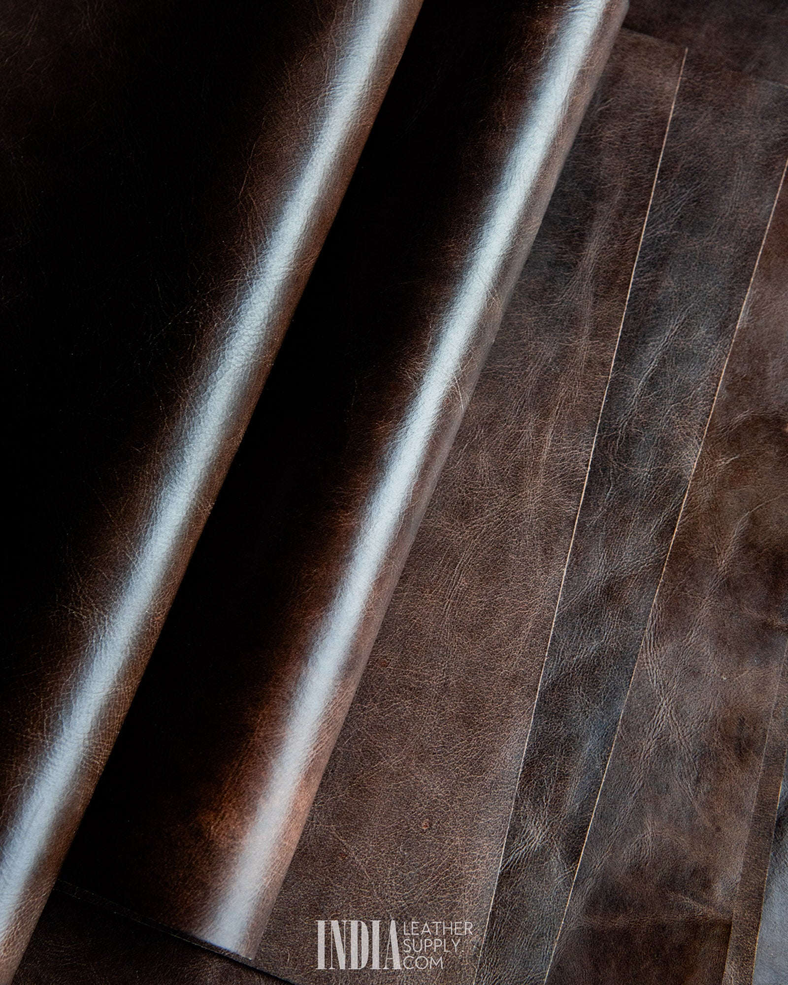 The leather features an aniline finish, allowing the natural surface to remain visible with a slightly distressed, lived-in appearance. Unlike heavily coated leathers, this finish keeps the surface open and responsive, which means it will develop character with use and handling over time.